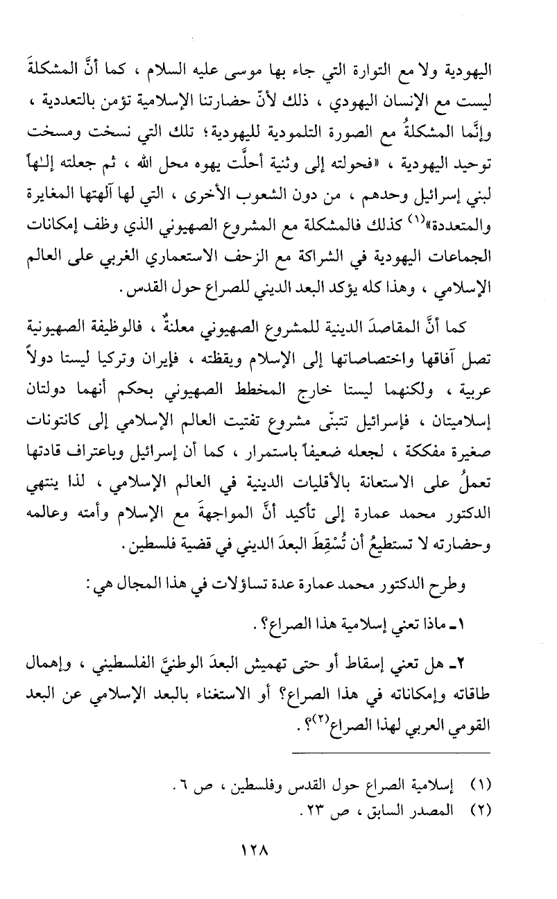 وطرح الدكتور محمد عمارة عدة تساؤلات في هذا المجال هي: