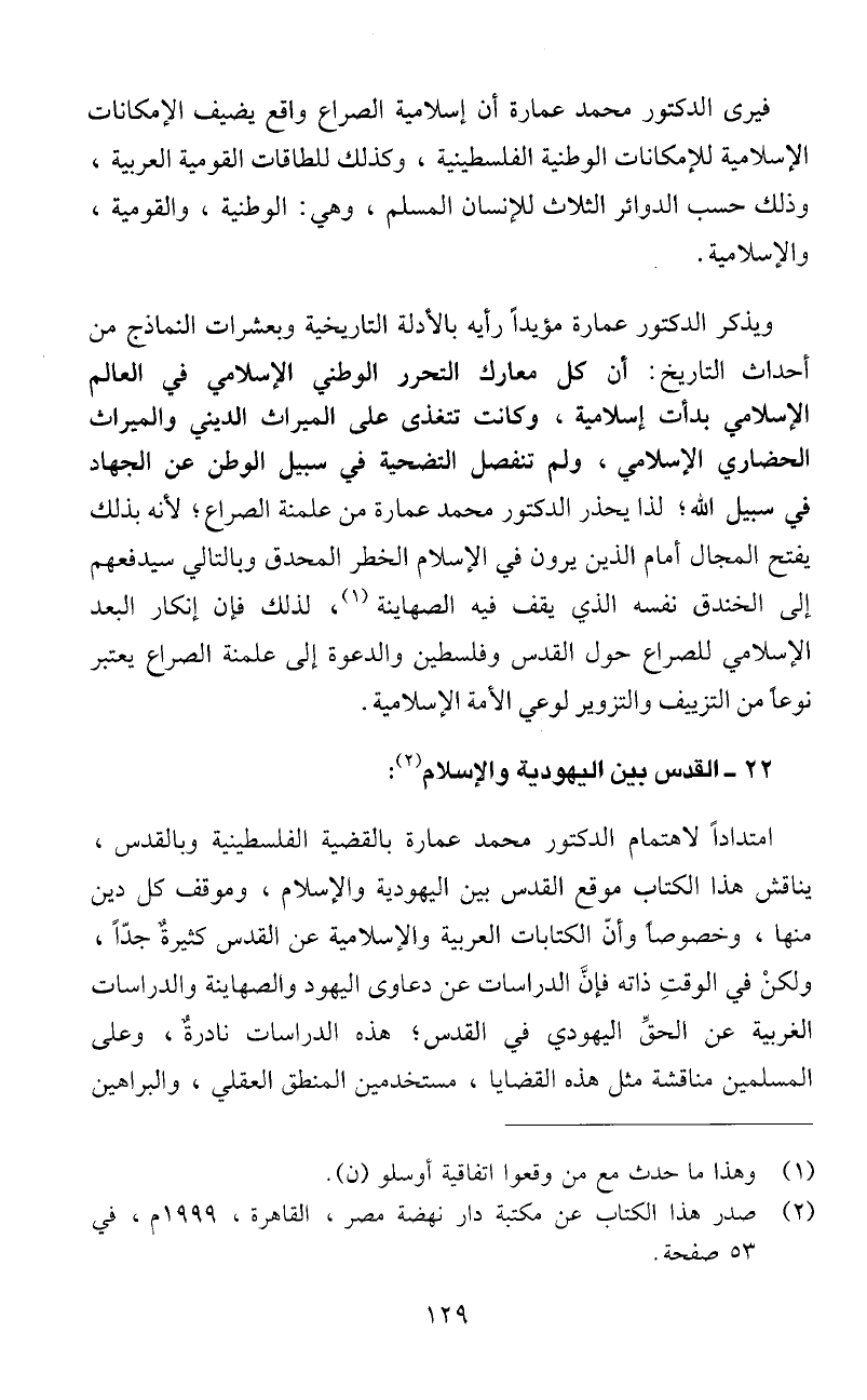 امتداداً لاهتمام الدكتور محمد عمارة بالقضية الفلسطينية وبالقدس،