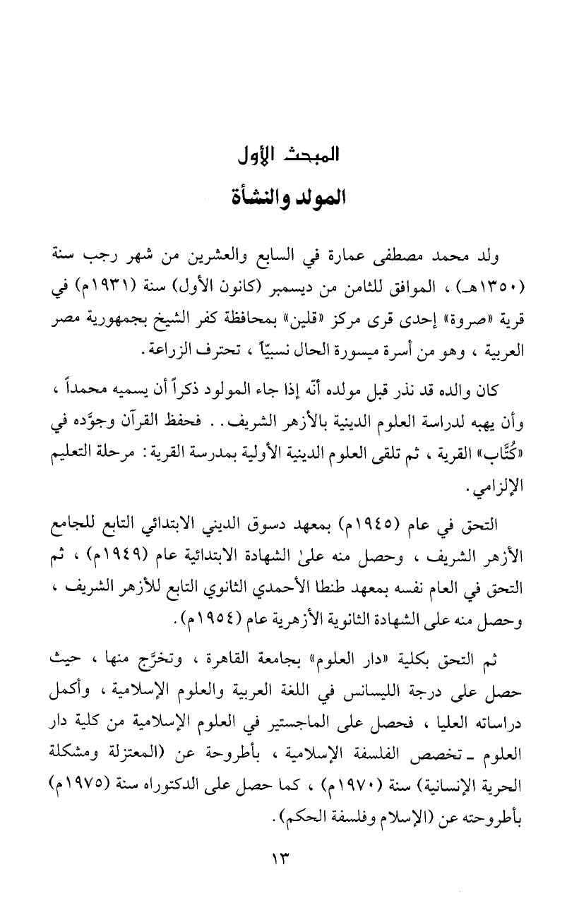 ولد محمد مصطفى عمارة في السابع والعشرين من شهر رجب سنة