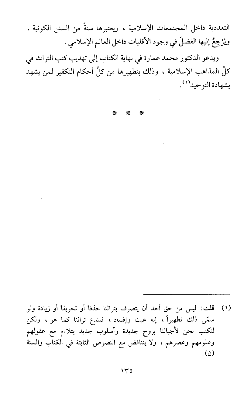 ويدعو الدكتور محمد عمارة في نهاية الكتاب إلى تهذيب كتب التراث في