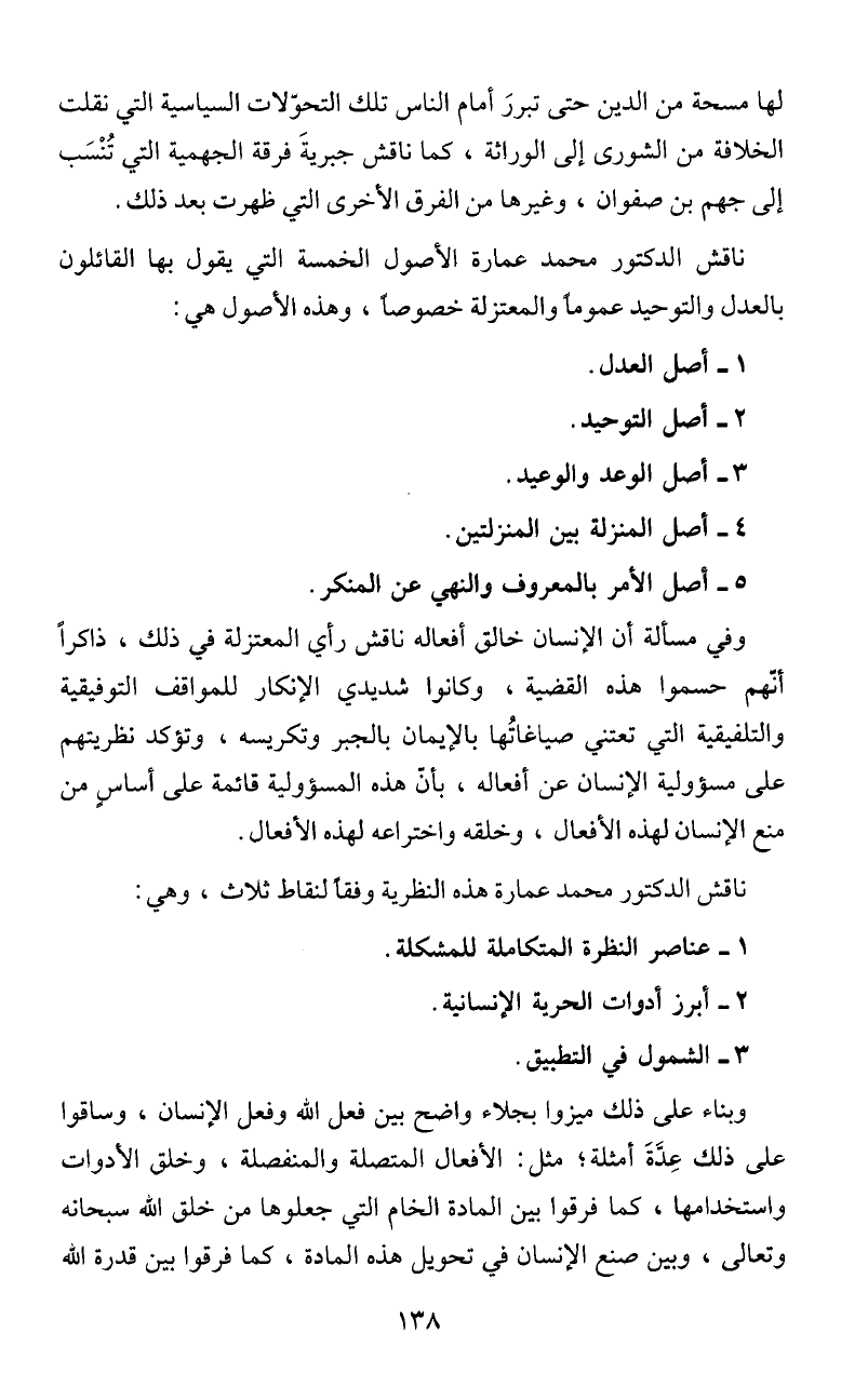 ناقش الدكتور محمد عمارة الأصول الخمسة التي يقول بها القائلون