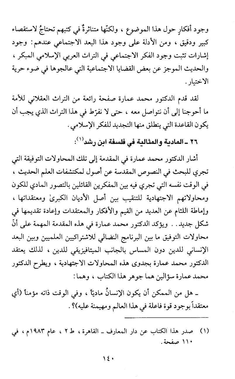 لقد قدم الدكتور محمد عمارة صفحة رائعة من التراث العقلاني للأمة