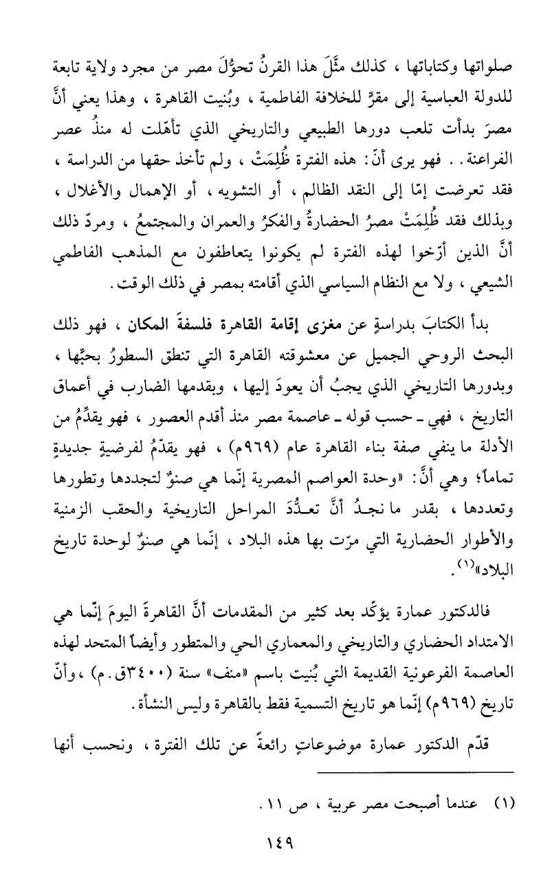 فالدكتور عمارة يؤكّد بعد كثير من المقدمات أن القاهرةَ اليومَ إنّما هي