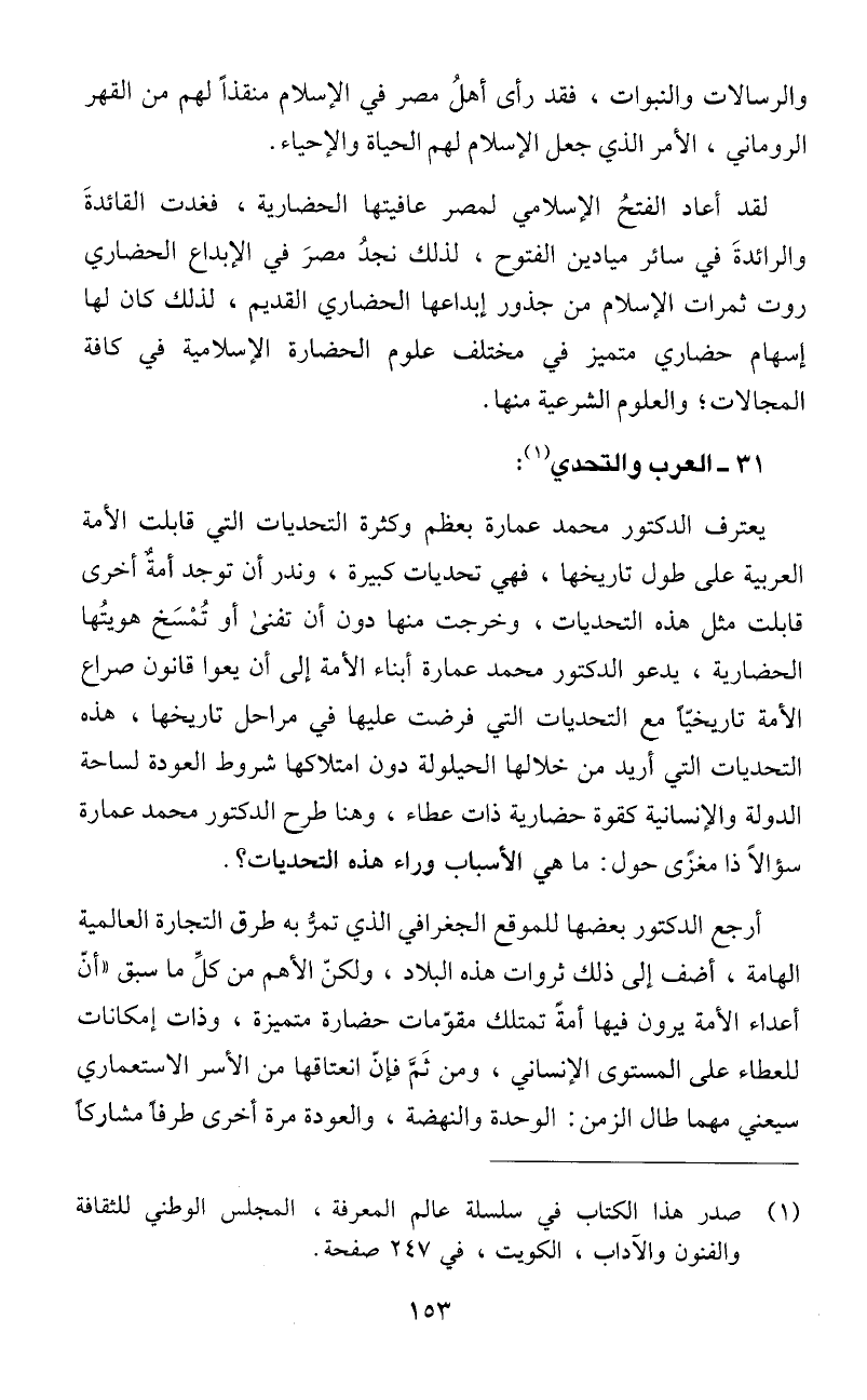 يعترف الدكتور محمد عمارة بعظم وكثرة التحديات اليَ قابلت الأمة