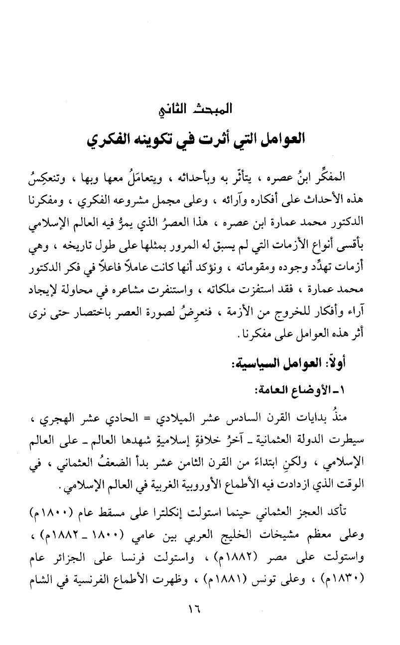 الدكتور محمد عمارة ابن عصره، هذا العصرُ الذي يمرُّ فيه العالم الإسلامي