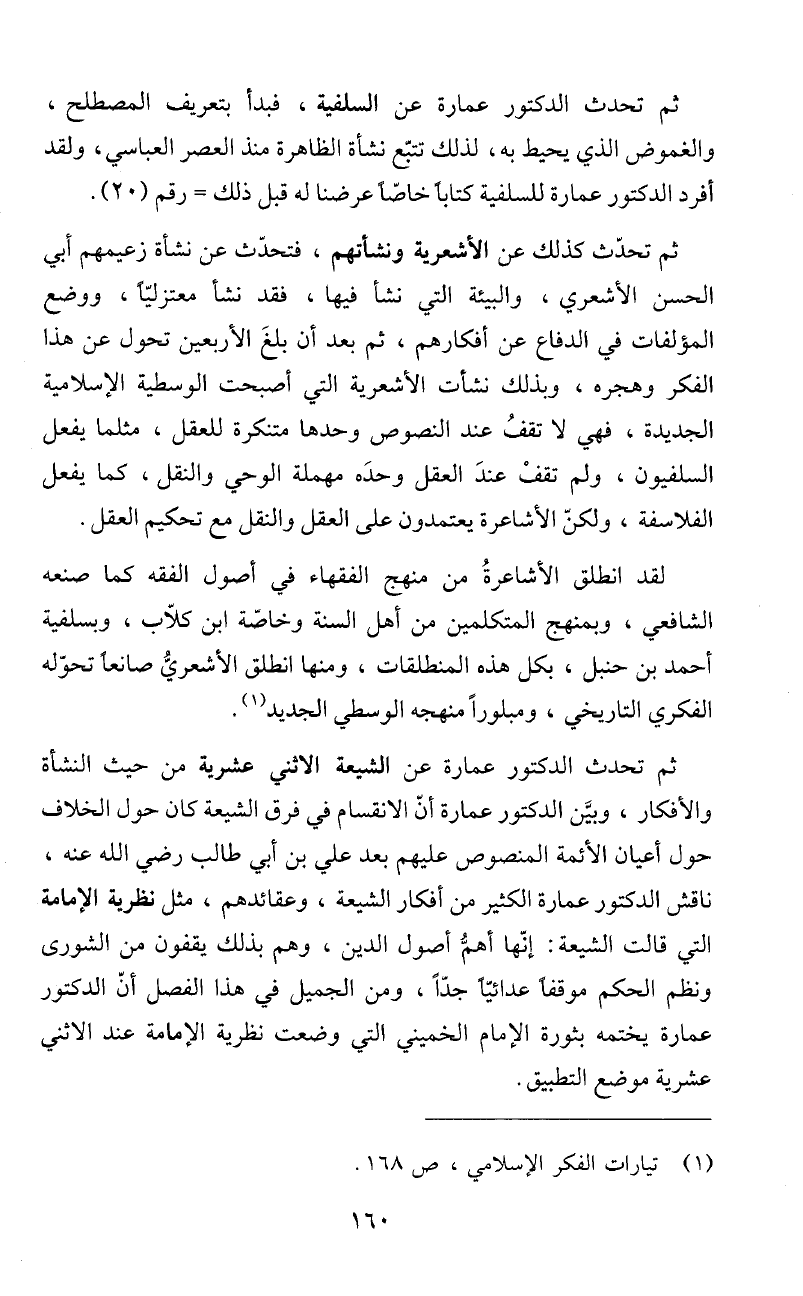 أفرد الدكتور عمارة للسلفية كتابأ خاصّأ عرضنا له قبل ذلك - رقم (0 2).