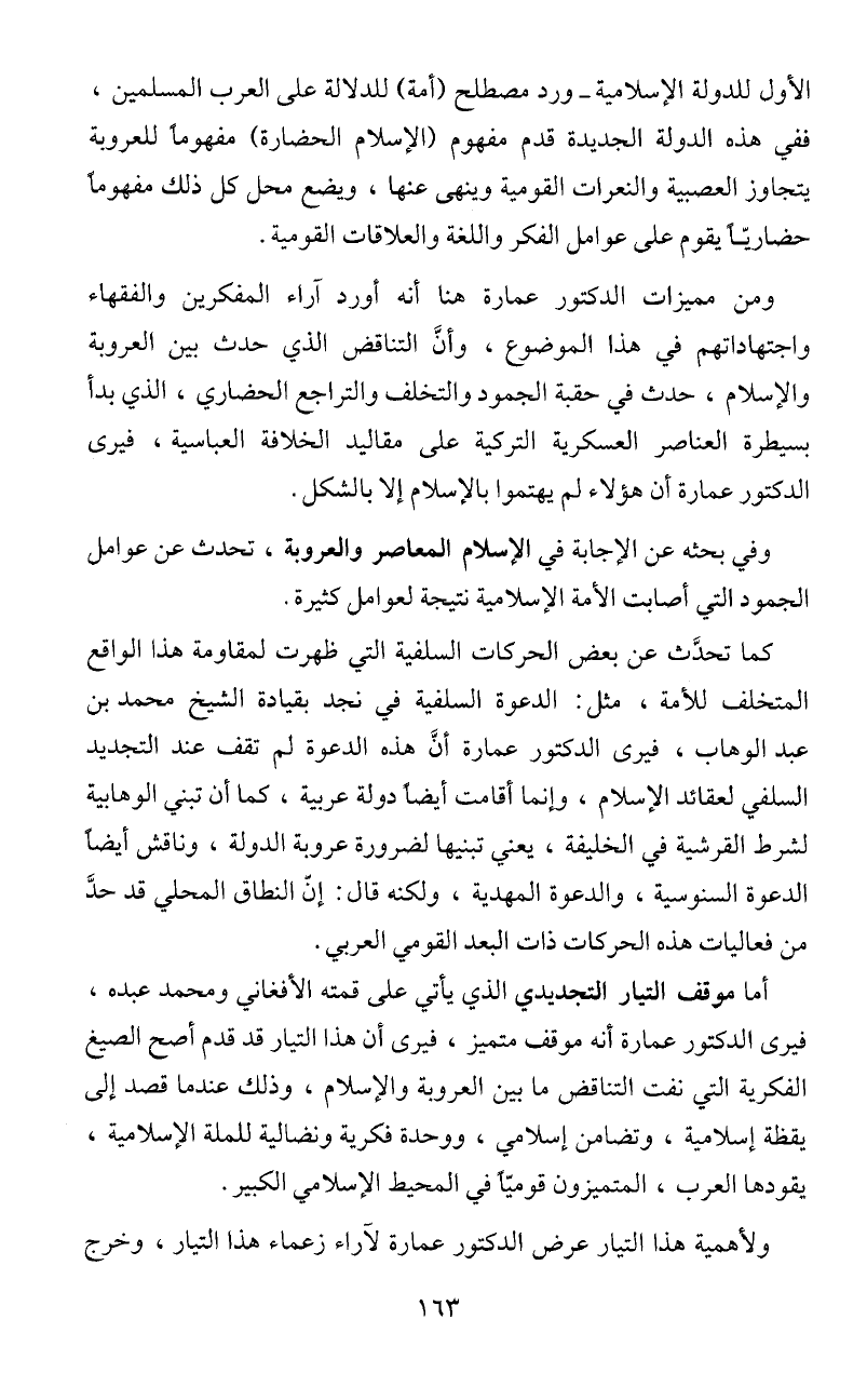 ولأهمية هذ! التيار عرض الدكتور عمارة لاَراء زعماء هذا التيار، وخرج