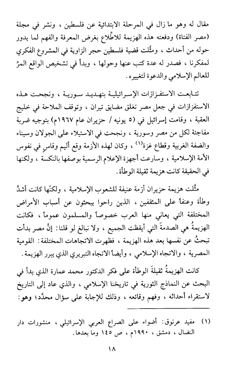كانت الهزيمةُ ثقيلةَ الوطأة على فكر الدكتور محمد عمارة الذي بدأ في