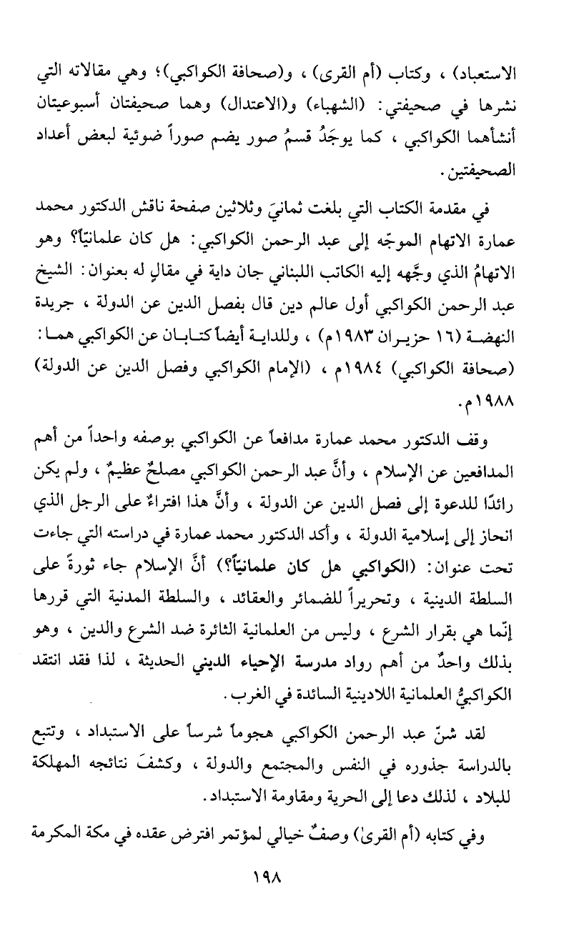 عمارة الاتهام الموجّه إلى عبد الرحمن الكواكبي: هل كان علمانيّأ؟ وهو