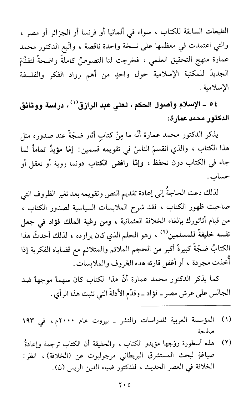 54 - الإسلام وأصول الحكم، لعلي عبد الرازق (1)، دراسة ووثائق