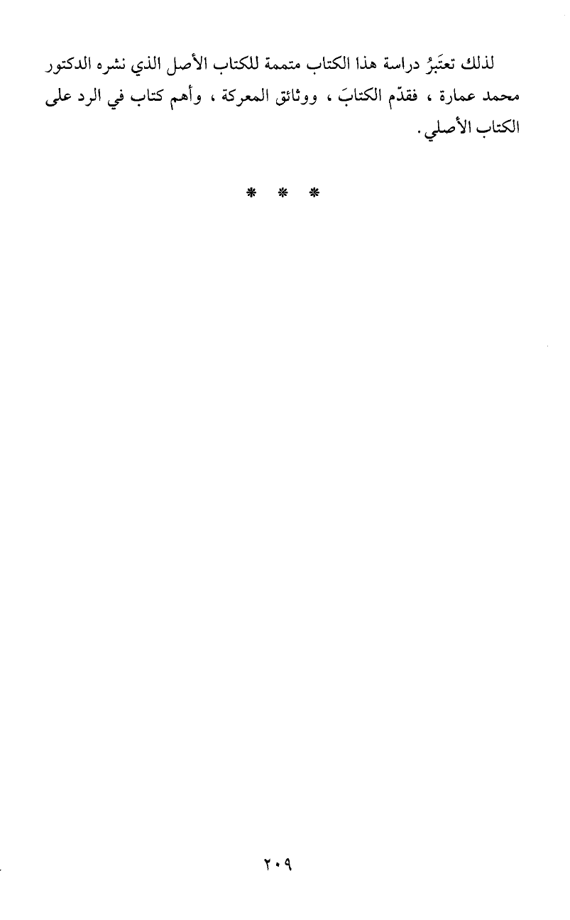 محمد عمارة، فقدّم الكتابَ، ووثائق المعركة، وأهم كتاب في الرد على