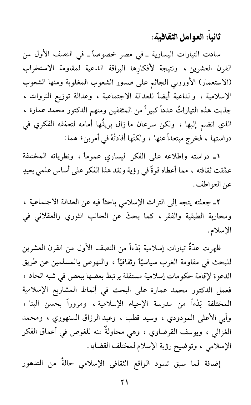 جذبت هذه التياراتُ عددأ كبيراَّ مَن المثقفين ومنهم الدكتور محمد عمارة،