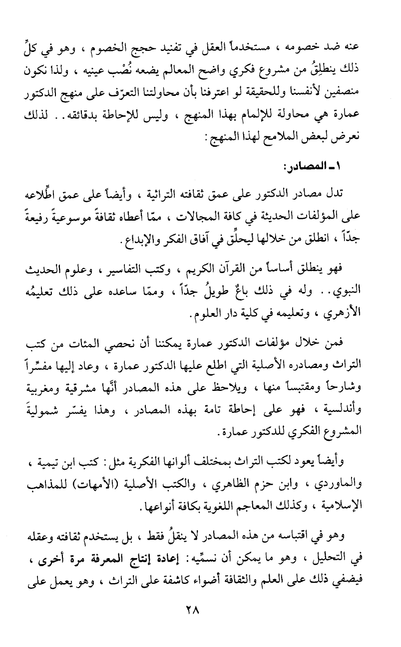 التراث ومصادره الأصلية التي اطلع عليها الدكتور عمارة، وعاد إليها مفسِّرأ