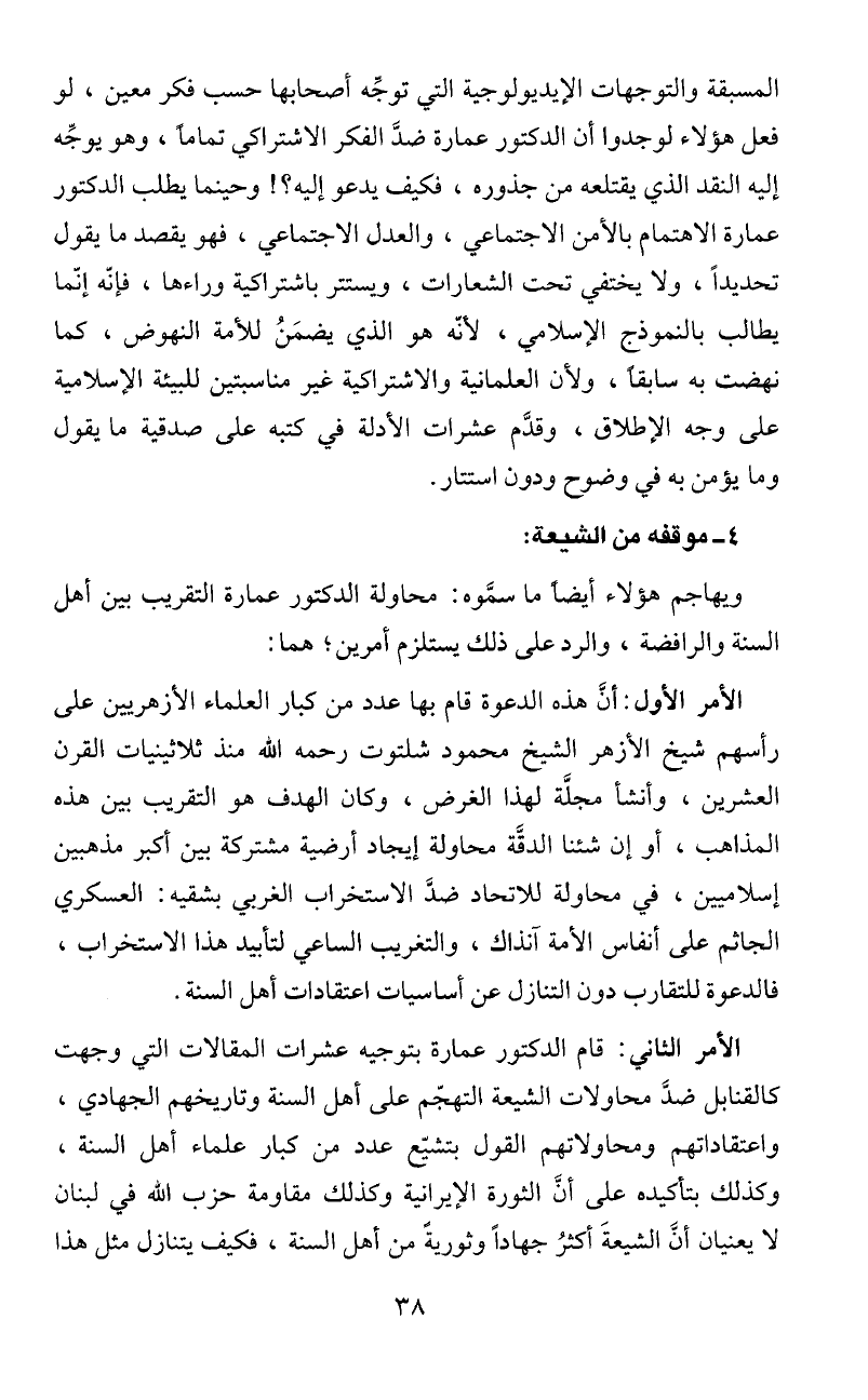 ويهاجم هؤلاء ايضأ ما سمَّوه: محاولة الدكتور عمارة التقريب بين أهل
