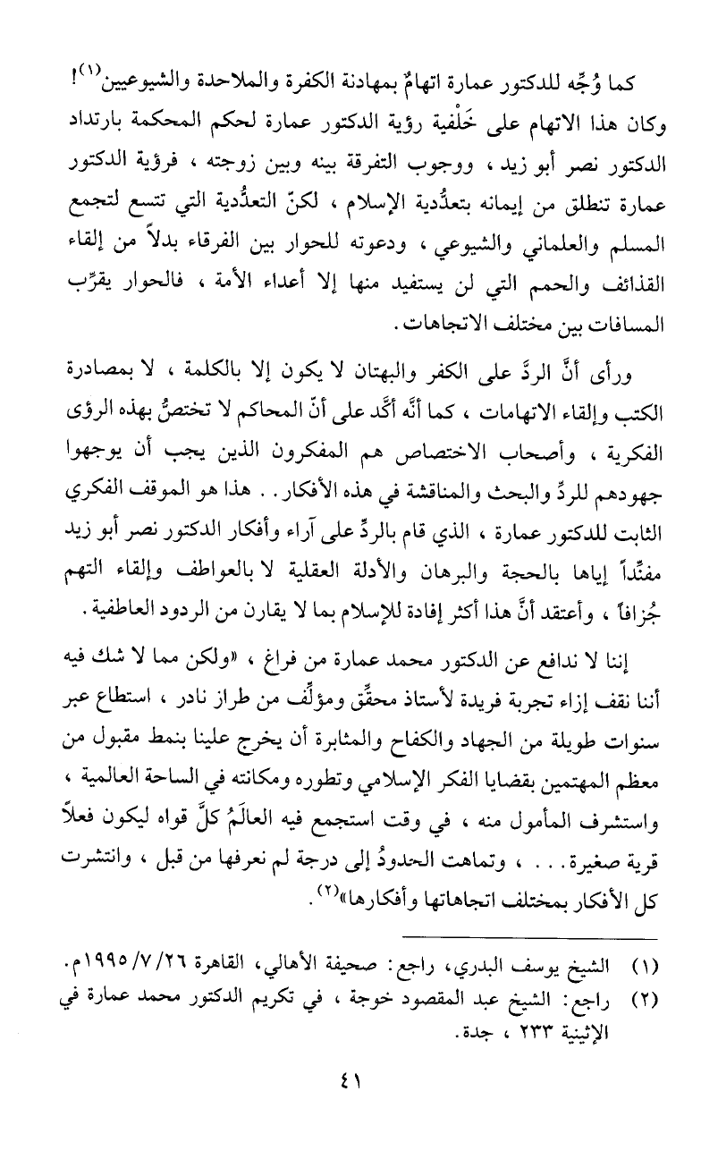 إننا لا ندإفع عن الدكتور محمد عمارة من فراغ، "ولكن مما لا شك فيه