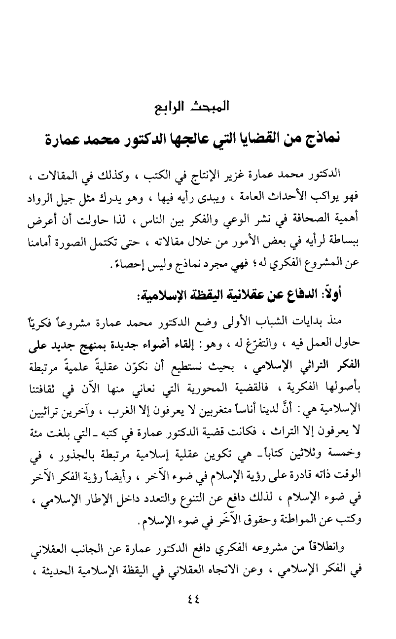 وانطلاقأ من مشروعه الفكري دافع الدكتور عمارة عن الجانب العقلاني