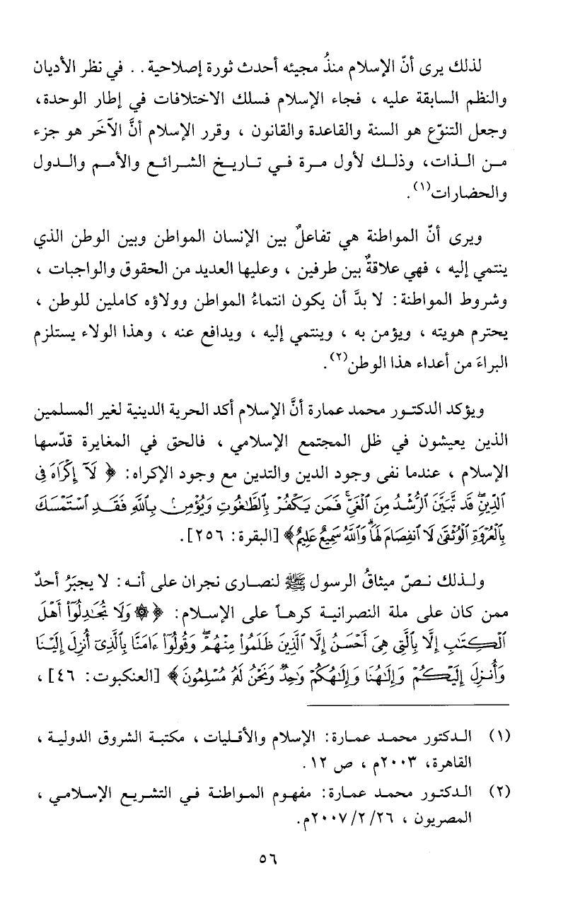 الدكتور محمد عمارة: مفهوم المواطنة في التشريع الإسلامي،