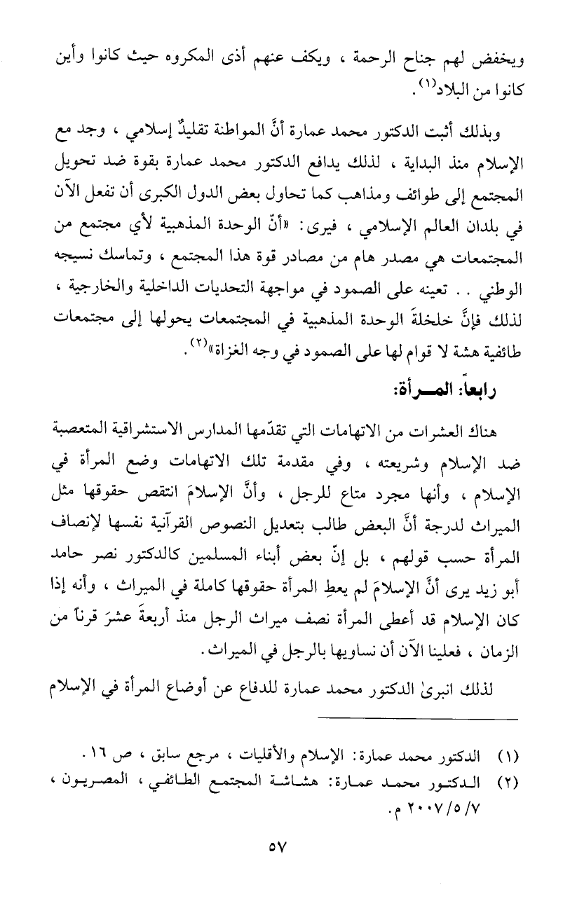 الإسلام منذ البداية، لذلك يدافع الدكتور محمد عمارة بقوة ضد تحويل