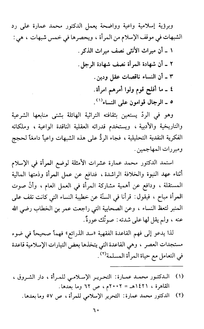 الدكتور محمد عمارة: التحرير الإسلامي للمرأة، ص 57 وما بعدها.