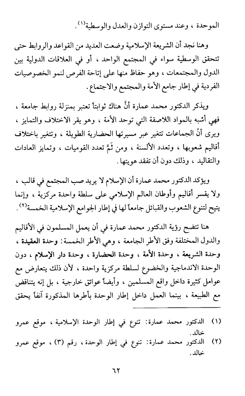 الدكتور محمد عمارة: تنوع في إطار الوحدة، رقم (3)، موقع عمرو