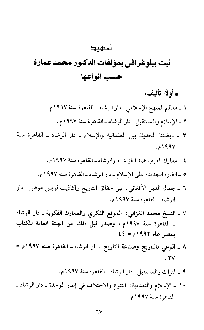 ثبت ببلوغرافي بمؤلفات الدكتور محمد عمارة