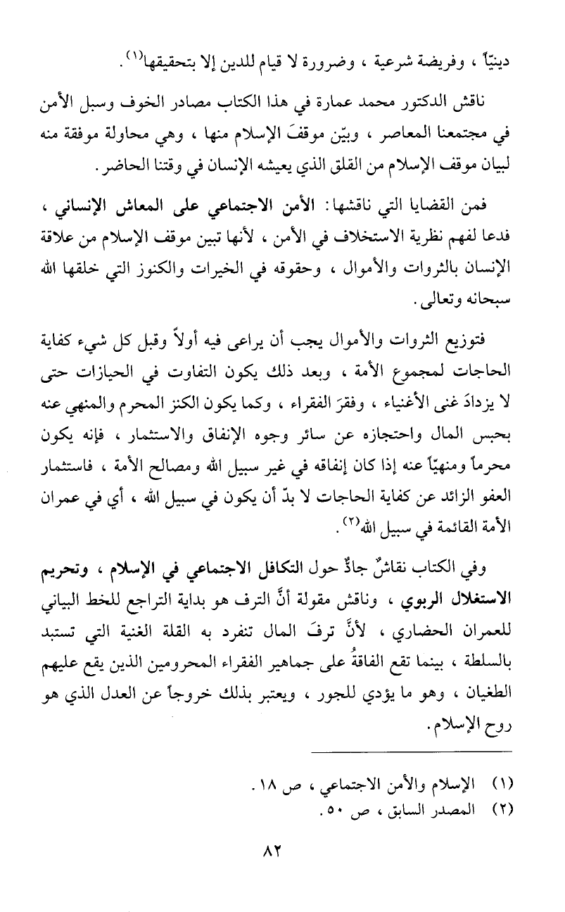 ناقش الدكتور محمد عمارة في هذا الكتاب مصادر الخوف وسبل الأمن
