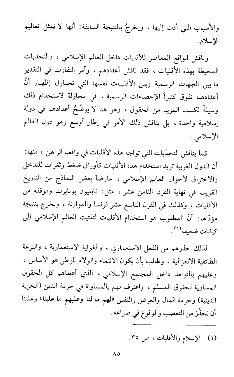 إسلامية واحدة، بل يناقش ذلك الامر في إطار أوسع وهو دول العالم