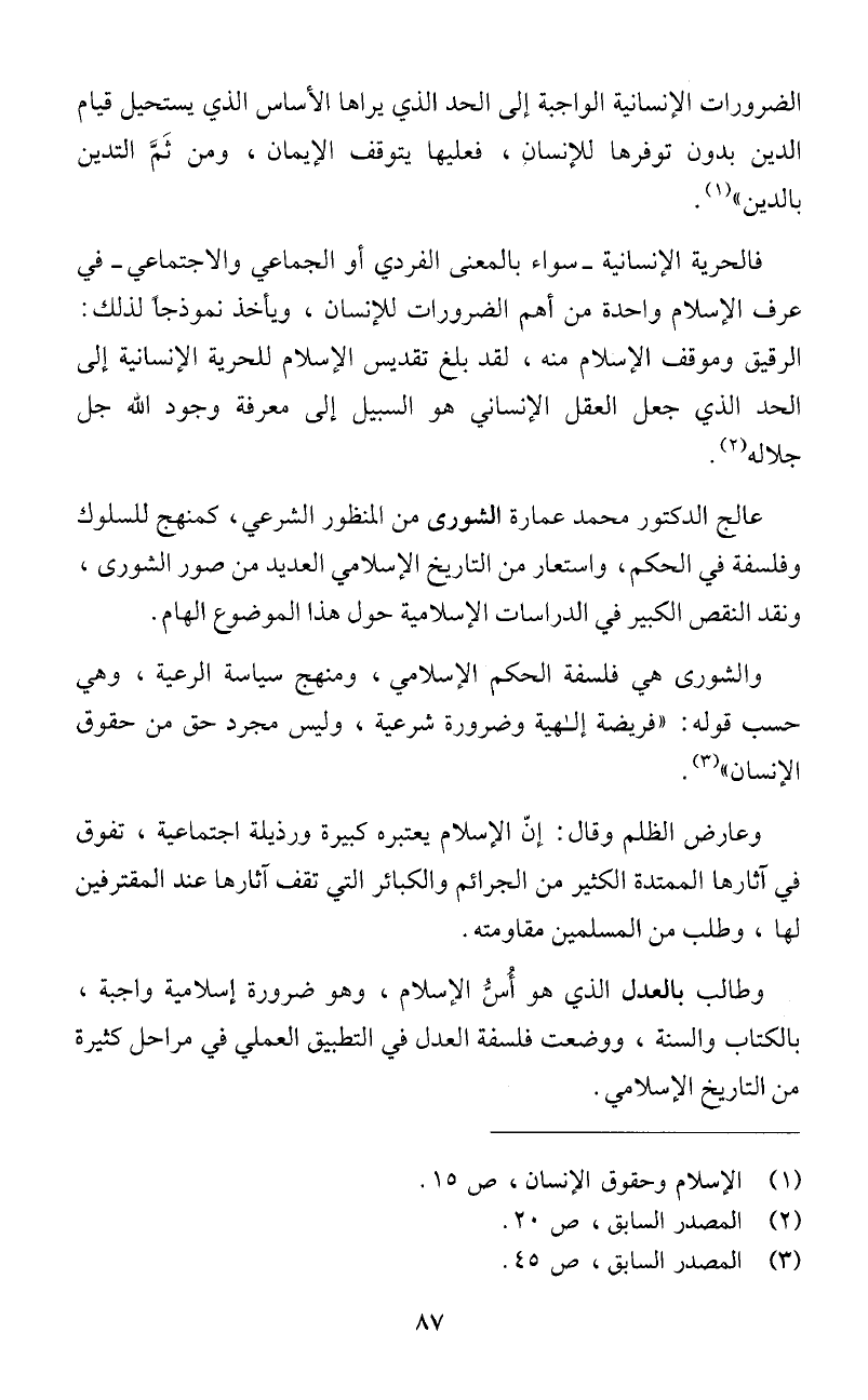 عالج الدكتور محمد عمارة الشورى من المنظور الشرعي، كمنهج للسلوك