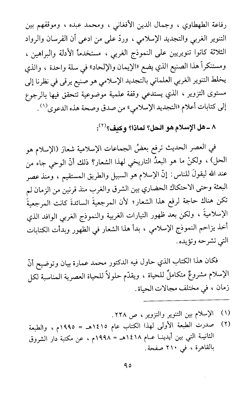 التنوير الغربي والتجديد الإسلامي، وردّ على من ادعى أن الفرسان والرواد