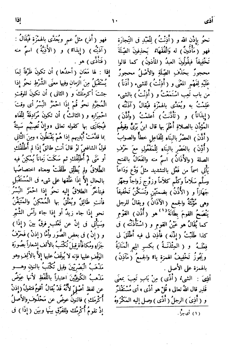 (ء ذ ي) : أَذِيَ الشَّيْءُ أَذًى مِنْ بَابِ تَعِبَ بِمَعْنَى قَذِرَ قَالَ اللَّهُ تَعَالَى: {قُلْ هُوَ أَذًى} [البقرة: 222] أَيْ مُسْتَقْذَرٌ وَأَذِيَ الرَّجُلُ أَذًى وَصَلَ إلَيْهِ الْمَكْرُوهُ فَهُوَ أَذٍ مِثْلُ عَمٍ وَيُعَدَّى بِالْهَمْزَةِ فَيُقَالُ آذَيْته إيذَاءً وَالْأَذِيَّةُ اسْمٌ مِنْهُ فَتَأَذَّى هُوَ.