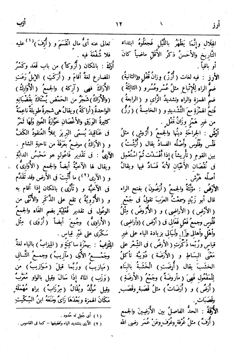 (ء ر ز) : الْأُرْزُ فِيهِ لُغَاتٌ أُرْزٌ وِزَانُ قُفْلٍ وَالثَّانِيَةُ ضَمُّ الرَّاءِ لِلْإِتْبَاعِ مِثْلُ عُسْرٍ وَعُسُرٍ وَالثَّالِثَةُ ضَمُّ الْهَمْزَةِ وَالرَّاءِ وَتَشْدِيدِ الزَّاي وَالرَّابِعَةُ فَتْحُ الْهَمْزَةِ مَعَ التَّشْدِيدِ وَالْخَامِسَةُ رُزٌّ مِنْ غَيْرِ هَمْزٍ وِزَانُ قُفْلٍ.