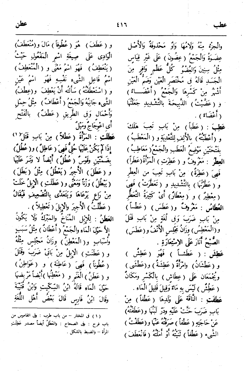 (¬1) فى المختار- من باب طرب: وفى القاموس من باب فرح: وفى الصحاح: والعَطَلُ أيضا مصدر عَطِلَتِ المرأة- والضبط بالشكل.