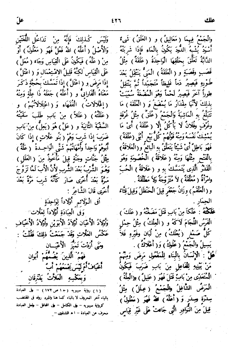 (¬1) رواية سيبويه (ج 1 ص 172) - وفي العبادة بالياء آخر الحروف لا بالباء كما هنا والمبرد رواه في المقتضب. كرواية سيبويه- وفي الكامل- وفي المحافل- ولعل العبادة محرف عن العيادة- اهـ الشناوي-