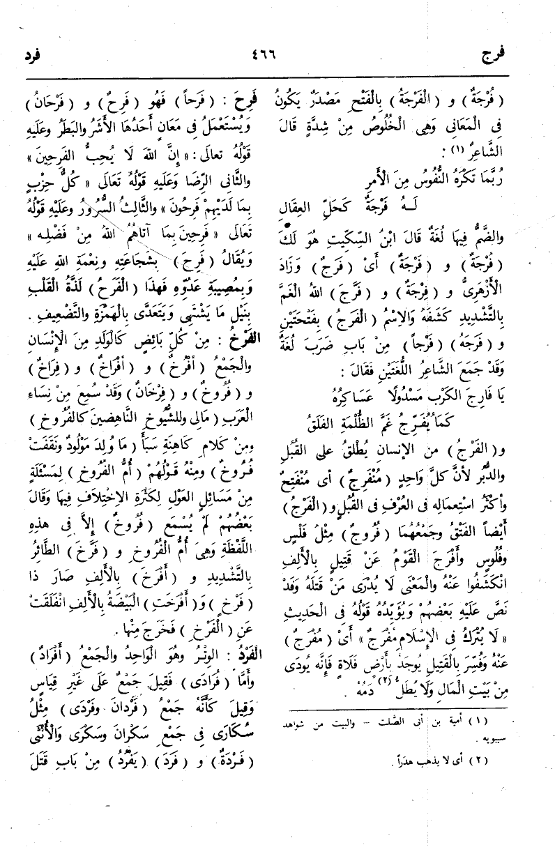 -[467]- صَارَ فَرْدًا وَأَفْرَدْتُهُ بِالْأَلِفِ جَعَلْتُهُ كَذَلِكَ وَأَفْرَدْتُ الْحَجَّ عَنْ الْعُمْرَةِ فَعَلْتُ كُلَّ وَاحِدٍ عَلَى حِدَةٍ وَانْفَرَدَ الرَّجُلُ بِنَفْسِهِ وَتَفَرَّدَ بِالْمَالِ وَأَفْرَدْتُهُ بِهِ وَأَفْرَدْتُ إلَيْهِ رَسُولًا.