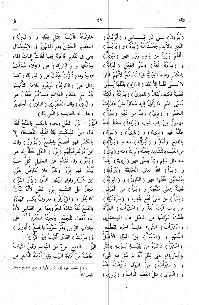 (¬1) ذهب غيره إلى أن (الأبزار) جمع فالفتح متعين وليس شاذّا.