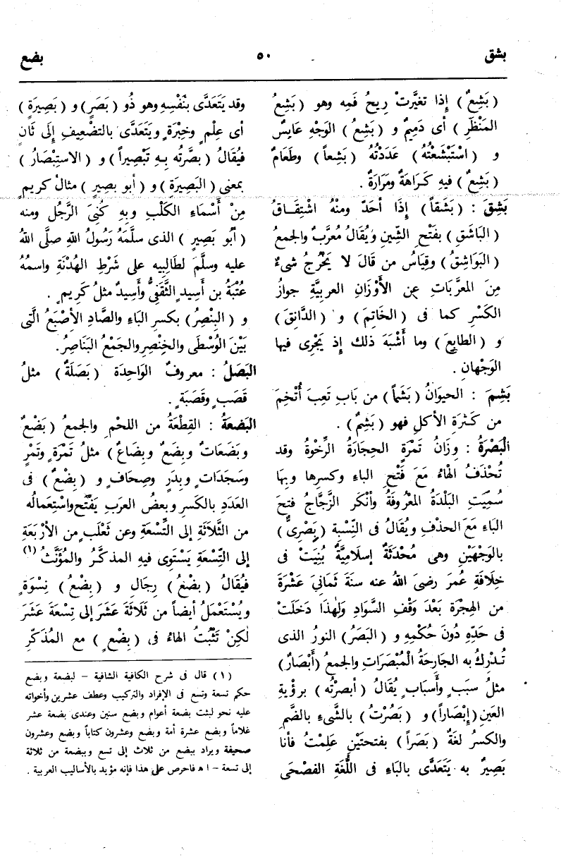 -[51]- وَتُحْذَفُ مَعَ الْمُؤَنَّثِ كَالنَّيِّفِ وَلَا يُسْتَعْمَلُ فِيمَا زَادَ عَلَى الْعِشْرِينَ وَأَجَازَهُ بَعْضُ الْمَشَايِخِ فَيَقُولُ بِضْعَةٌ وَعِشْرُونَ رَجُلًا وَبِضْعٌ وَعِشْرُونَ امْرَأَةً وَهَكَذَا قَالَهُ أَبُو زَيْدٍ وَقَالُوا عَلَى هَذَا مَعْنَى الْبِضْعِ وَالْبِضْعَةُ فِي الْعَدَدِ قِطْعَةٌ مُبْهَمَةٌ غَيْرُ مَحْدُودَةٍ.