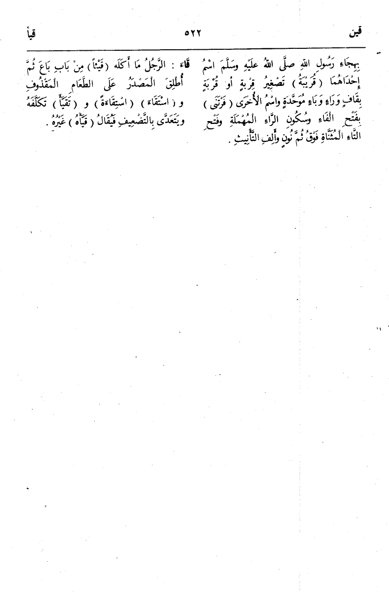 (ق يء) : قَاءَ الرَّجُلُ مَا أَكَلَهُ قَيْئًا مِنْ بَابِ بَاعَ ثُمَّ أُطْلِقَ الْمَصْدَرُ عَلَى الطَّعَامِ الْمَقْذُوفِ وَاسْتَقَاءَ اسْتِقَاءَةً وَتَقَيَّأَ تَكَلَّفَهُ وَيَتَعَدَّى بِالتَّضْعِيفِ فَيُقَالُ قَيَّأَهُ غَيْرُهُ.