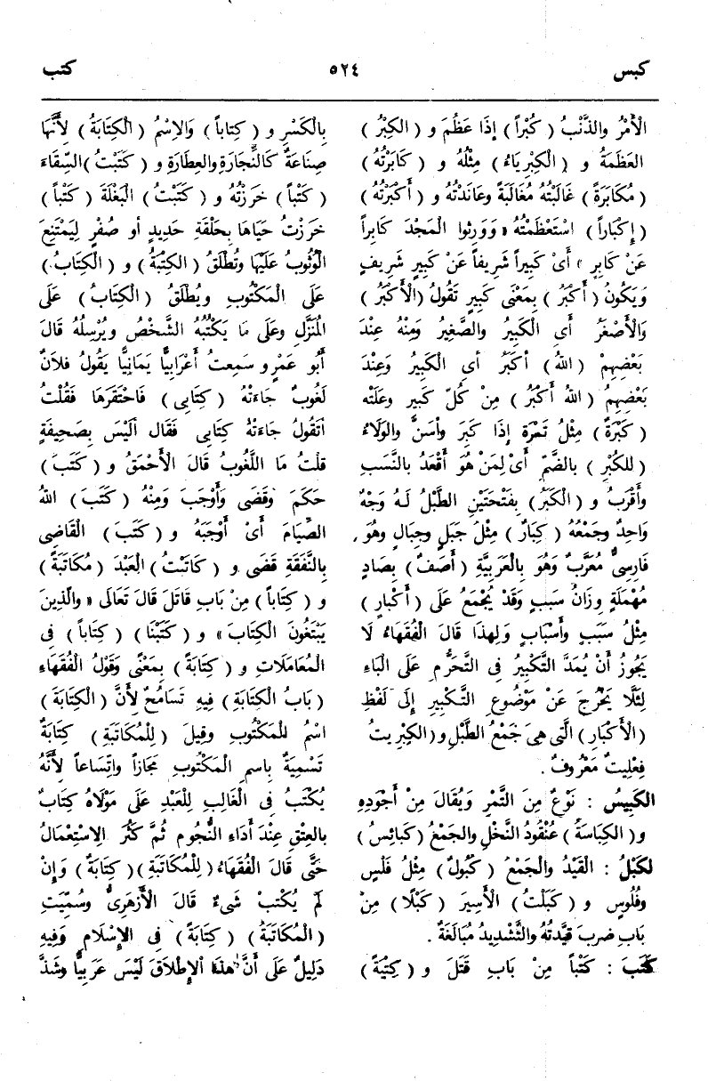 -[525]- الزَّمَخْشَرِيُّ فَجَعَلَ الْمُكَاتَبَةَ وَالْكِتَابَةَ بِمَعْنًى وَاحِدٍ وَلَا يَكَادُ يُوجَدُ لِغَيْرِهِ ذَلِكَ وَيَجُوزُ أَنَّهُ أَرَادَ الْكِتَابَ فَطَغَا الْقَلَمُ بِزِيَادَةِ الْهَاءِ قَالَ الْأَزْهَرِيُّ الْكِتَابُ وَالْمُكَاتَبَةُ أَنْ يُكَاتِبَ الرَّجُلُ عَبْدَهُ أَوْ أَمَتَهُ عَلَى مَالٍ مُنَجَّمٍ وَيَكْتُبُ الْعَبْدُ عَلَيْهِ أَنَّهُ يَعْتِقُ إذَا أَدَّى النُّجُومَ وَقَالَ غَيْرُهُ بِمَعْنَاهُ وَتَكَاتَبَا كَذَلِكَ فَالْعَبْدُ مُكَاتَبٌ بِالْفَتْحِ اسْمُ مَفْعُولٍ وَبِالْكَسْرِ اسْمُ فَاعِلٍ لِأَنَّهُ كَاتَبَ سَيِّدَهُ فَالْفِعْلُ مِنْهُمَا وَالْأَصْلُ فِي بَابِ الْمُفَاعَلَةِ أَنْ يَكُونَ مِنْ اثْنَيْنِ فَصَاعِدًا يَفْعَلُ أَحَدُهُمَا بِصَاحِبِهِ مَا يَفْعَلُ هُوَ بِهِ وَحِينَئِذٍ فَكُلُّ وَاحِدٍ فَاعِلٌ وَمَفْعُولٌ مِنْ حَيْثُ الْمَعْنَى وَالْمَكْتَبُ بِفَتْحِ الْمِيمِ وَالتَّاءِ مَوْضِعُ تَعْلِيمِ الْكِتَابَةِ وَكَتَّبْتُهُ بِالتَّشْدِيدِ عَلَّمْتُهُ الْكِتَابَةَ وَالْكَتِيبَةُ الطَّائِفَةُ مِنْ الْجَيْشِ مُجْتَمِعَةً وَالْجَمْعُ كَتَائِبُ.