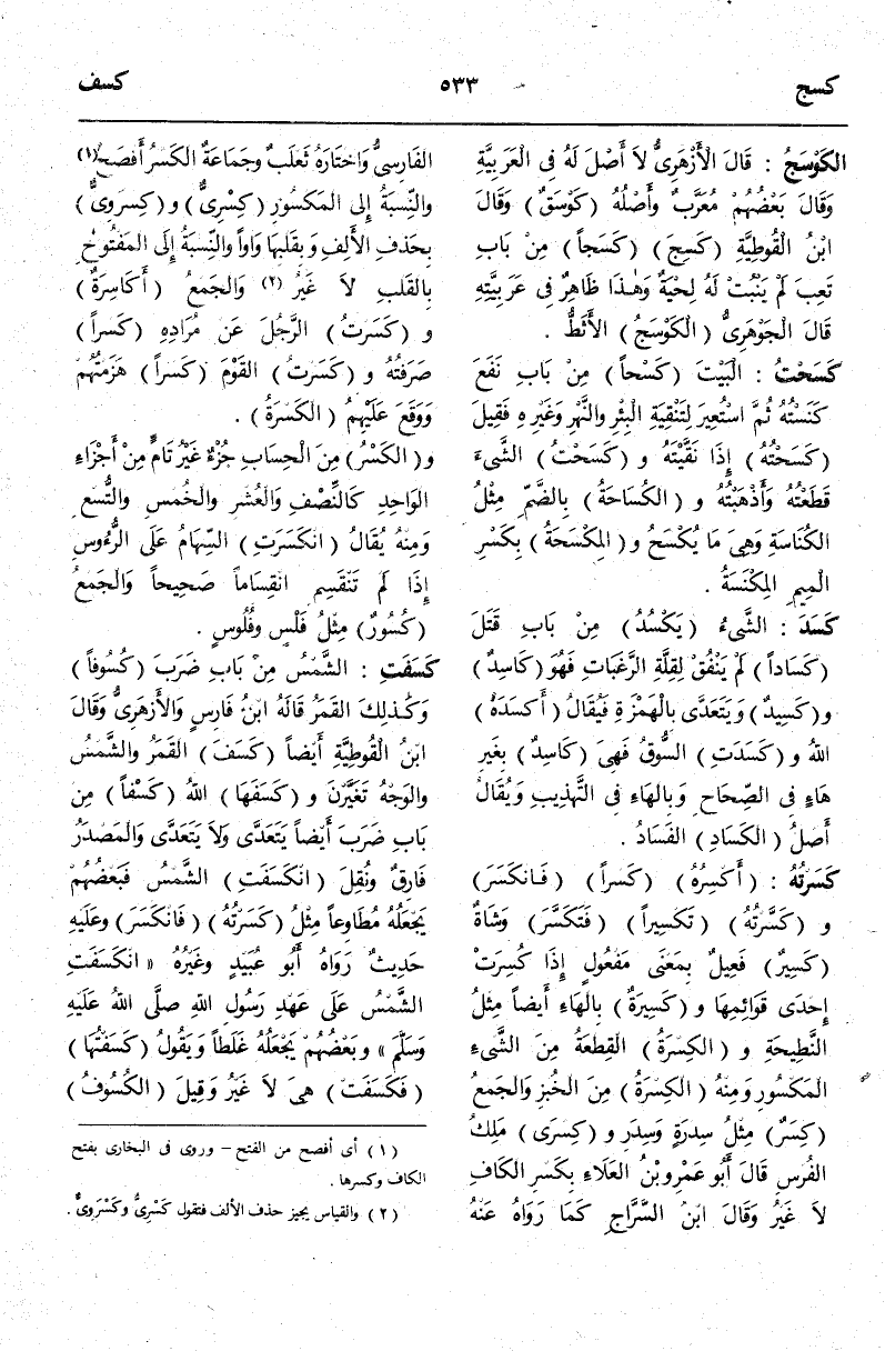 (¬2) والقياس يجيز حذف الألف فتقول كَسْرِىُّ وكَسْرَوىٌّ.