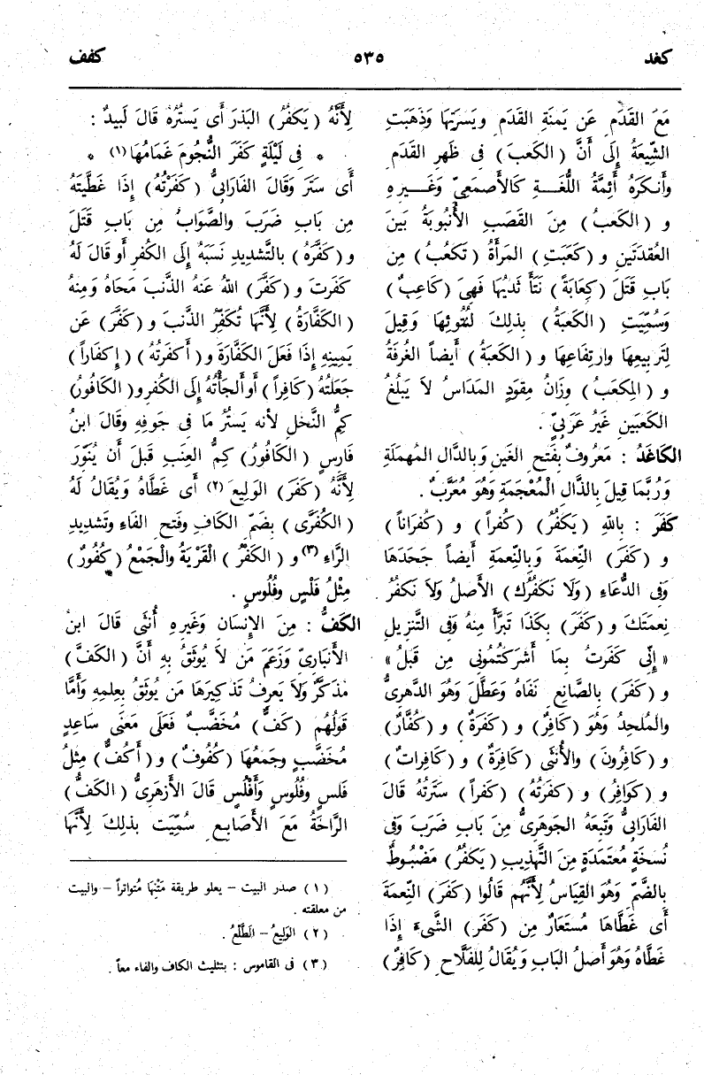 وَالْكَفْرُ الْقَرْيَةُ وَالْجَمْعُ كُفُورٌ مِثْلُ فَلْسٍ وَفُلُوسٍ.