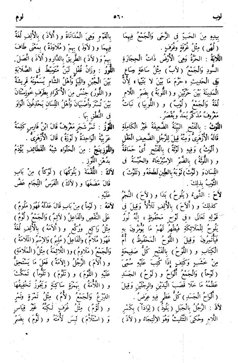 (ل وز) : اللَّوْزُ ثَمَرُ شَجَرٍ مَعْرُوفٌ قَالَ ابْنُ فَارِسٍ كَلِمَةٌ عَرَبِيَّةٌ الْوَاحِدَةُ لَوْزَةٌ قَالَ الْأَزْهَرِيُّ.