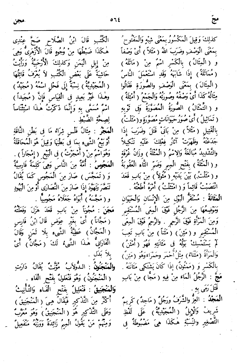 (م ج د) : الْمَجْدُ الْعِزُّ وَالشَّرَفُ وَرَجُلٌ مَاجِدٌ كَرِيمٌ شَرِيفُ وَالْإِبِلُ الْمُجَيْدِيَّةُ عَلَى لَفْظِ التَّصْغِيرِ وَالنِّسْبَةِ هَكَذَا هِيَ مَضْبُوطَةٌ فِي الْكُتُبِ قَالَ ابْنُ الصَّلَاحِ صَحَّ عِنْدِي هَكَذَا ضَبْطُهَا مِنْ وُجُوهٍ قَالَ الْأَزْهَرِيُّ وَهِيَ مِنْ إبِلِ الْيَمَنِ وَكَذَلِكَ الْأَرْحَبِيَّةُ وَرَأَيْتُ حَاشِيَةً عَلَى بَعْضِ الْكُتُبِ لَا يُعْرَفُ قَائِلُهَا الْمُجَيْدِيَّةُ نِسْبَةٌ إلَى فَحْلٍ اسْمُهُ مُجَيْدٌ وَهَذَا غَيْرُ بَعِيدٍ فِي الْقِيَاسِ فَإِنَّ مُجَيْدًا اسْمٌ مُسَمًّى بِهِ وَإِنَّمَا ذَكَرْتُ هَذَا اسْتِئْنَاسًا لِصِحَّةِ الضَّبْطِ.