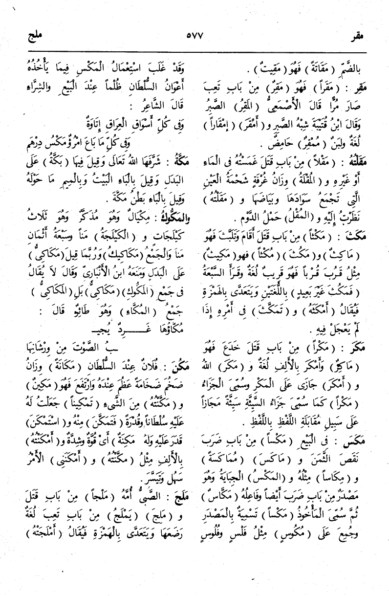 (م ك س) : مَكَسَ فِي الْبَيْعِ مَكْسًا مِنْ بَابِ ضَرَبَ نَقَصَ الثَّمَنَ وَمَاكَسَ مُمَاكَسَةً وَمِكَاسًا مِثْلُهُ وَالْمَكْسُ الْجِبَايَةُ وَهُوَ مَصْدَرٌ مِنْ بَابِ ضَرَبَ أَيْضًا وَفَاعِلُهُ مَكَّاسٌ ثُمَّ سُمِّيَ الْمَأْخُوذُ مَكْسًا تَسْمِيَةً بِالْمَصْدَرِ وَجُمِعَ عَلَى مُكُوسٍ مِثْلُ فَلْسٍ وَفُلُوسٍ وَقَدْ غَلَبَ اسْتِعْمَالُ الْمَكْسِ فِيمَا يَأْخُذُهُ أَعْوَانُ السُّلْطَانِ ظُلْمًا عِنْدَ الْبَيْعِ وَالشِّرَاءِ قَالَ الشَّاعِرُ