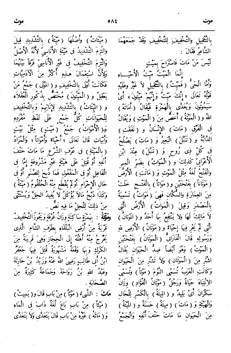 -[585]- وَمَاثَتْ الْأَرْضُ لَانَتْ وَسَهُلَتْ فَهِيَ مِيثَاءُ عَلَى مِفْعَالٍ بِالْكَسْرِ وَبِالْيَاءِ.