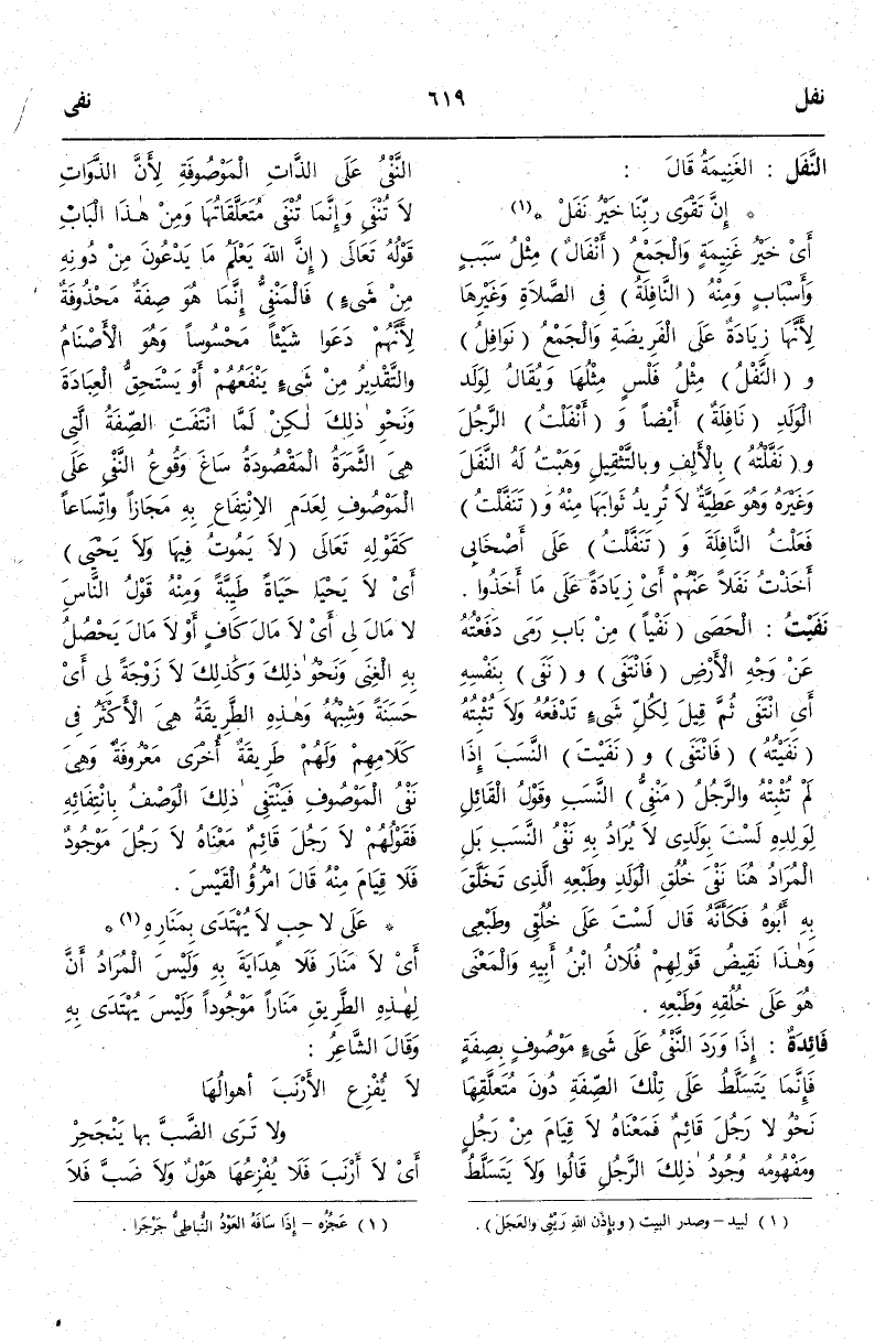 (ن ف ل) : النَّفَلُ الْغَنِيمَةُ قَالَ