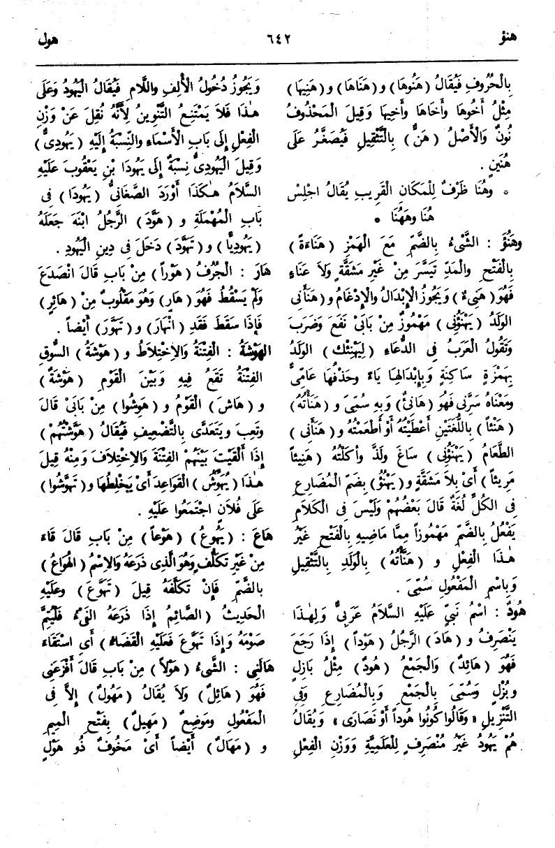 (هـ ود) : هُودٌ اسْمُ نَبِيٍّ عَرَبِيٍّ وَلِهَذَا يَنْصَرِفُ وَهَادَ الرَّجُلُ هَوْدًا إذَا رَجَعَ فَهُوَ هَائِدٌ وَالْجَمْعُ هُودٌ مِثْلُ بَازِلٍ وَبُزْلٍ وَسُمِّيَ بِالْجَمْعِ وَبِالْمُضَارِعِ.
