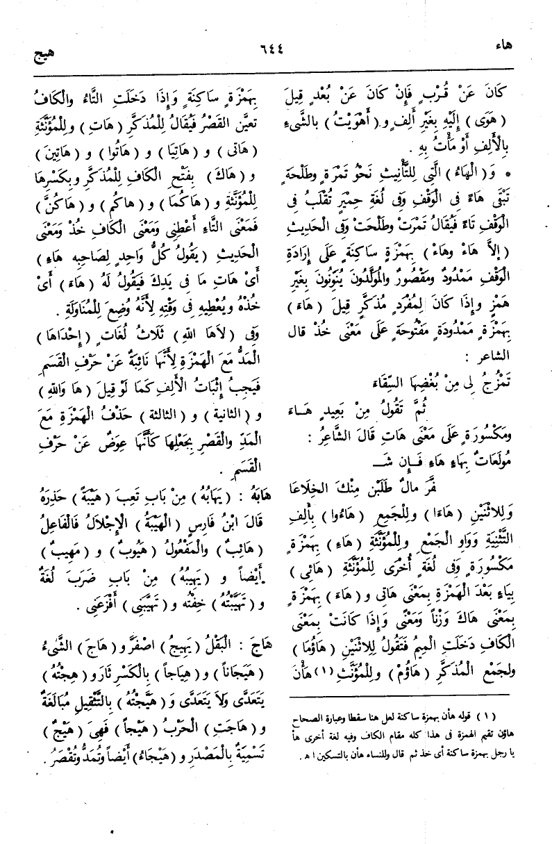 (هـ ي ج) : هَاجَ الْبَقْلُ يَهِيجُ اصْفَرَّ وَهَاجَ الشَّيْءُ هَيَجَانًا وَهِيَاجًا بِالْكَسْرِ ثَارَ وَهِجْتُهُ يَتَعَدَّى وَلَا يَتَعَدَّى وَهَيَّجْتُهُ بِالتَّثْقِيلِ مُبَالَغَةٌ وَهَاجَتْ الْحَرْبُ هَيْجًا فَهِيَ هَيْجٌ تَسْمِيَةٌ بِالْمَصْدَرِ وَهَيْجَاءُ أَيْضًا وَتُمَدُّ وَتُقْصَرُ