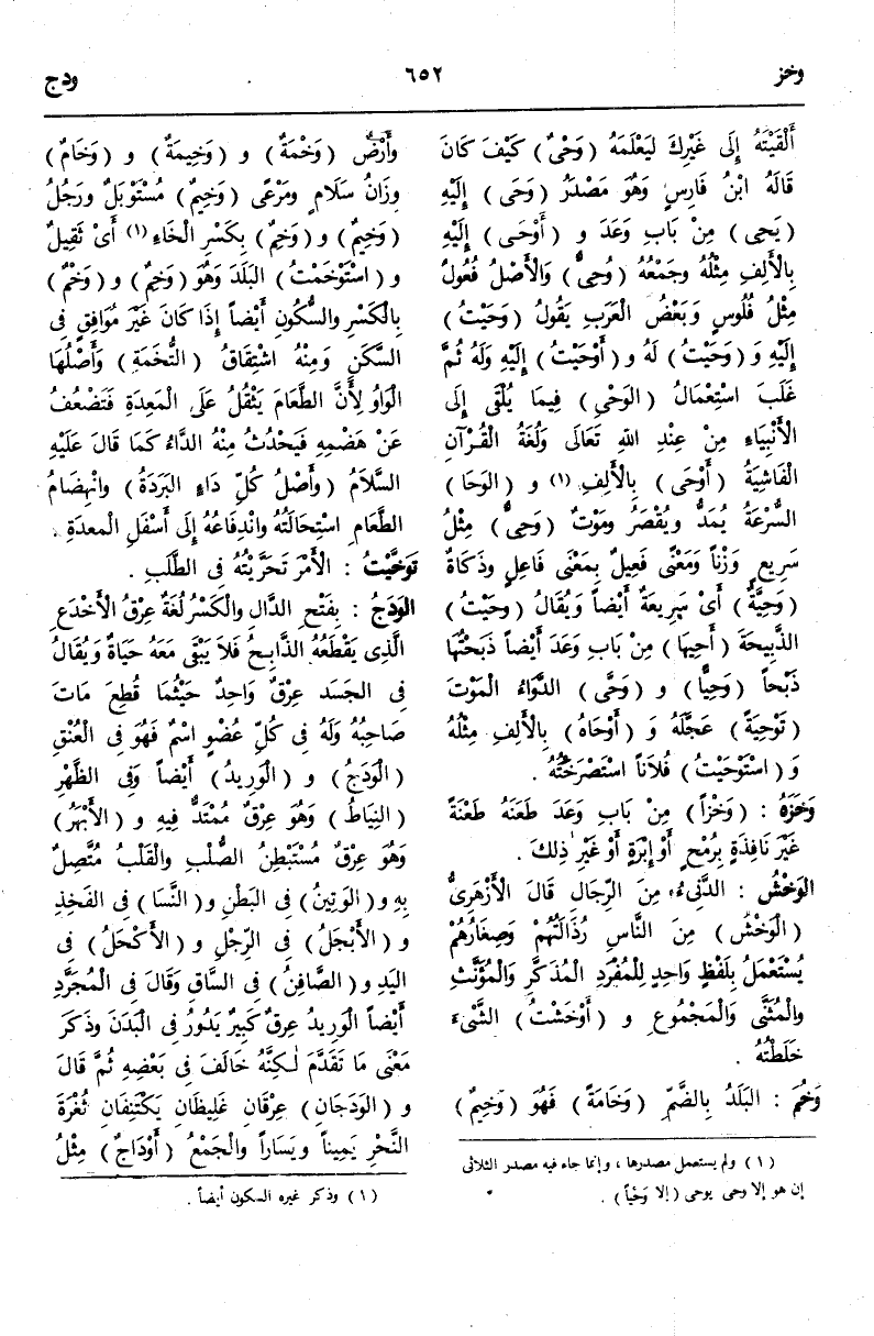 (وخ م) : وَخُمَ الْبَلَدُ بِالضَّمِّ وَخَامَةً فَهُوَ وَخِيمٌ وَأَرْضٌ وَخِمَةٌ وَوَخِيمَةٌ وَوَخَامٌ وِزَانُ سَلَامٍ وَمَرْعًى وَخِيمٌ مُسْتَوْبَلٌ وَرَجُلٌ وَخِيمٌ وَوَخِمٌ بِكَسْرِ الْخَاءِ (¬1) أَيْ ثَقِيلٌ وَاسْتَوْخَمْتُ الْبَلَدَ وَهُوَ وَخِمٌ وَوَخْمٌ بِالْكَسْرِ وَالسُّكُونِ أَيْضًا إذَا كَانَ غَيْرَ مُوَافِقٍ فِي السَّكَنِ وَمِنْهُ اشْتِقَاقُ التُّخَمَةِ وَأَصْلُهَا الْوَاوُ لِأَنَّ الطَّعَامَ يَثْقُلُ عَلَى الْمَعِدَةِ فَتَضْعُفُ عَنْ هَضْمِهِ فَيَحْدُثُ مِنْهُ الدَّاءُ كَمَا قَالَ وَأَصْلُ كُلِّ دَاءٍ الْبَرَدَةُ وَانْهِضَامُ الطَّعَامِ اسْتِحَالَتُهُ وَانْدِفَاعُهُ إلَى أَسْفَلِ الْمَعِدَةِ.