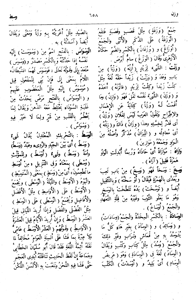 -[659]- حَتَّى حَرَّفُوا بَعْضَهُ عَنْ مَوَاضِعِهِ وَمَا هَذِهِ سَبِيلُهُ فَلَا يُحْتَجُّ بِأَلْفَاظِهِ الْمُخَالِفَةِ لِأَنَّ الْمُحَدِّثِينَ لَمْ يَنْقُلُوا الْحَدِيثَ لِضَبْطِ أَلْفَاظِهِ حَتَّى يُحْتَجَّ بِهَا بَلْ لِمَعَانِيهِ وَلِهَذَا أَجَازُوا نَقْلَ الْحَدِيثِ بِالْمَعْنَى وَلِهَذَا قَدْ تَخْتَلِفُ أَلْفَاظُ الْحَدِيثِ الْوَاحِدِ اخْتِلَافًا كَثِيرًا وَلِأَنَّ الْعَشْرَ جَمْعٌ وَالْأَوْسَطَ مُفْرَدٌ وَلَا يُخْبَرُ عَنْ الْجَمْعِ بِمُفْرَدٍ عَلَى أَنَّهُ يُحْتَمَلُ غَلَطُ الْكَاتِبِ بِسُقُوطِ الْأَلِفِ مِنْ الْأَوَاسِطِ وَالْهَاءِ مِنْ الْعَشَرَةِ وَحَقِيقَةُ الْوَسَطِ مَا تَسَاوَتْ أَطْرَافُهُ وَقَدْ يُرَادُ بِهِ مَا يُكْتَنَفُ مِنْ جَوَانِبِهِ وَلَوْ مِنْ غَيْرِ تَسَاوٍ كَمَا قِيلَ إنَّ صَلَاةَ الظُّهْرِ هِيَ الْوُسْطَى وَيُقَالُ ضَرَبْتُ وَسَطَ رَأْسِهِ بِالْفَتْحِ لِأَنَّهُ اسْمٌ لِمَا يَكْتَنِفُهُ مِنْ جِهَاتِهِ غَيْرُهُ وَيَصِحُّ دُخُولُ الْعَوَامِلِ عَلَيْهِ فَيَكُونُ فَاعِلًا وَمَفْعُولًا وَمُبْتَدَأً فَيُقَالُ اتَّسَعَ وَسَطُهُ وَضَرَبْتُ وَسَطَ رَأْسِهِ وَجَلَسْتُ فِي وَسَطِ الدَّارِ وَوَسَطُهُ خَيْرٌ مِنْ طَرَفِهِ قَالُوا وَالسُّكُونُ فِيهِ لُغَةٌ وَأَمَّا وَسْطٌ بِالسُّكُونِ فَهُوَ بِمَعْنَى بَيْنَ نَحْوُ جَلَسْتُ وَسْطَ الْقَوْمِ أَيْ بَيْنَهُمْ وَيُقَالُ وَسَطْتُ الْقَوْمَ وَالْمَكَانَ أَسِطُ وَسْطًا مِنْ بَابِ وَعَدَ إذَا تَوَسَّطْتُ بَيْنَ ذَلِكَ وَالْفَاعِلُ.