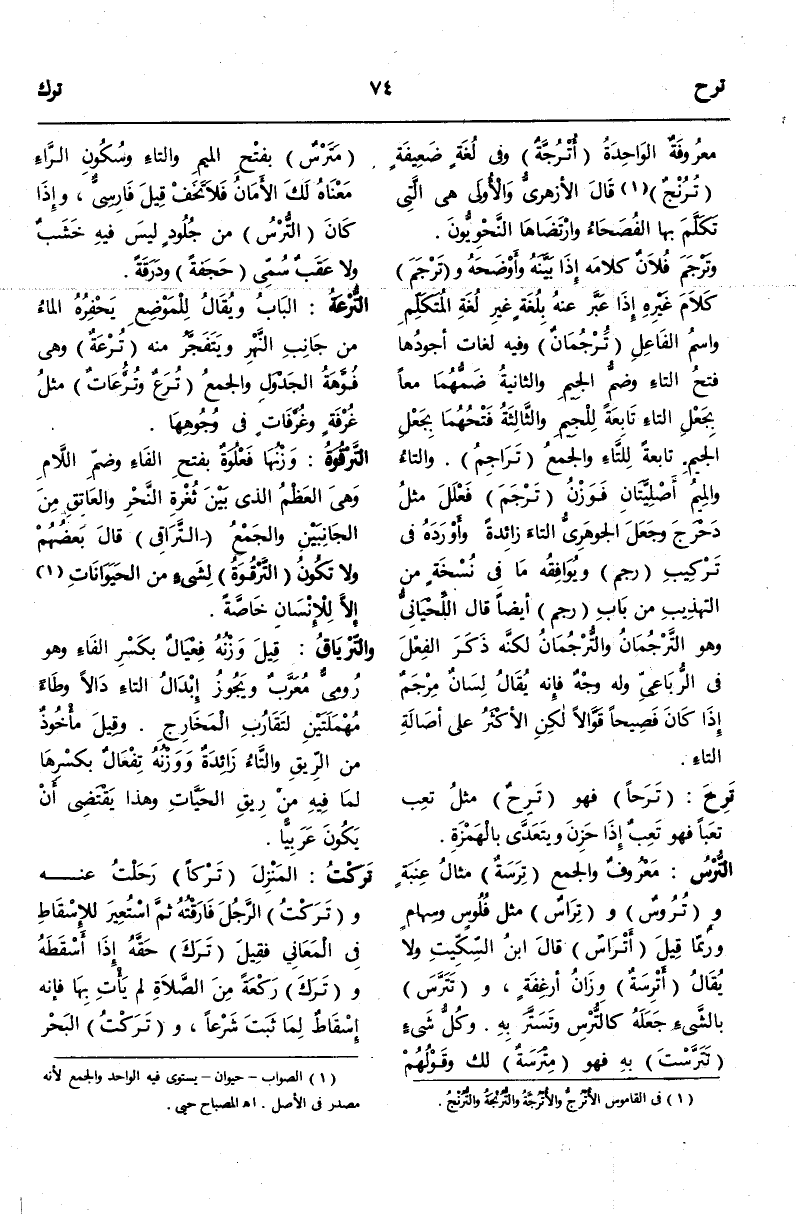 -[75]- سَاكِنًا لَمْ أُغَيِّرْهُ عَنْ حَالِهِ وَتَرَكَ الْمَيِّتُ مَالًا خَلَّفَهُ وَالِاسْمُ التَّرِكَةُ وَيُخَفَّفُ بِكَسْرِ الْأَوَّلِ وَسُكُونِ الرَّاءِ مِثْلُ: كَلِمَةٍ وَكِلْمَةٍ وَالْجَمْعُ تَرِكَاتٌ.